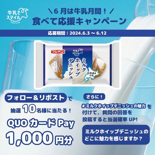 6月の牛乳月間に合わせて、牛乳でスマイルプロジェクト商品でX(旧Twitter)キャンペーンを実施いたします。
