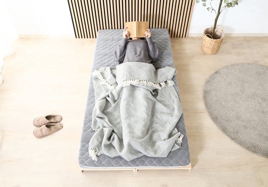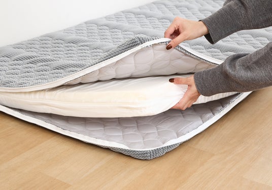 ポリエチレンとウレタンの2層構造を採用し、硬め・柔らかめを気分や体調に合わせて使い分け可能。軽量ながらも体をしっかり受け止める設計です。厚みは約10cmの薄型仕様ながら、構造を工夫することで底付き感を抑え、フローリングに直接敷いても安心感のある寝心地を叶えます。