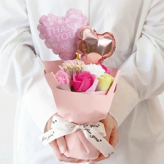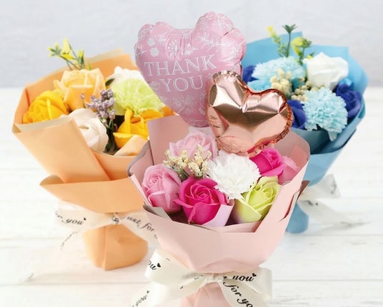 枯れないソープフラワーは長く飾ることができるため、日頃の感謝の気持ちを形として残すことができます。また、バルーンが添えられた華やかなデザインは、特別な日の贈り物としてもぴったりです。