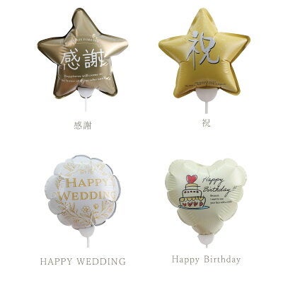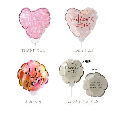本商品には、ブーケカラーに合わせたハート型バルーンと、用途に応じて選べるメッセージバルーンの2本がセットされています。
