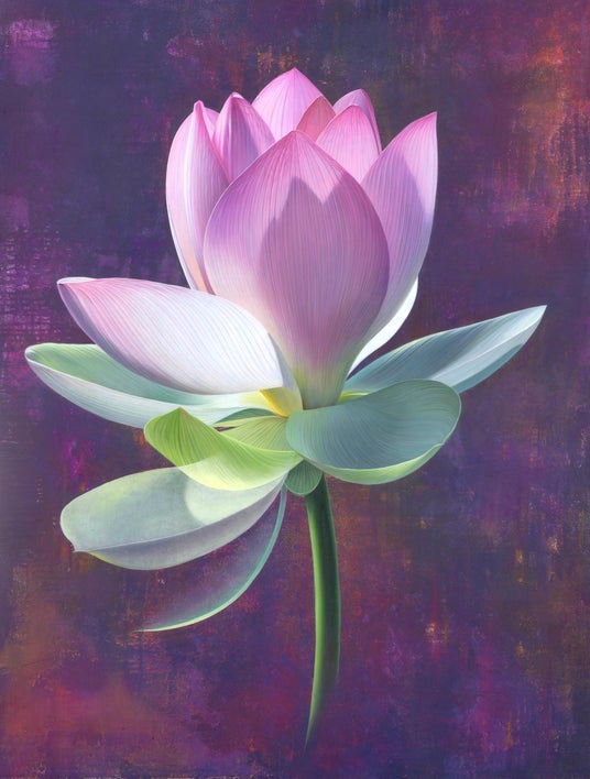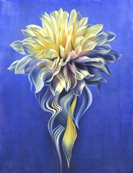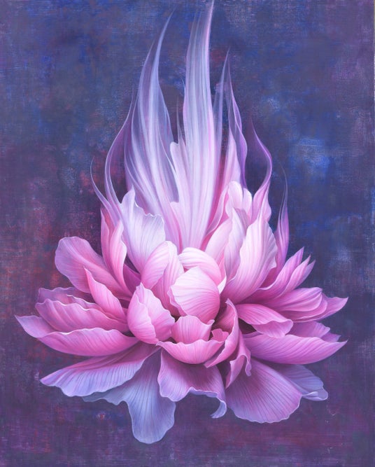 1971年東京都生まれ。東京藝術大学大学院美術研究科修士課程修了。花の秘めたるエネルギーの盛衰の中に、宇宙、時間、命、死といった普遍的テーマを落とし込み、それらの象徴として花を描いています。モチーフとなる花は、植物園などでの取材からフォルムの美しさや面白さを感じるものを選び出し、不必要に美化せず花の持つ存在感を活かし、細い筆を用いて線の重なりで形を描き起こします。何層にも絵具を塗り重ねることで生まれる下地の深い奥行きが、画面に独特の風合いを与え、細密かつ鮮やかに描いたモチーフとの対比がより際立ちます。