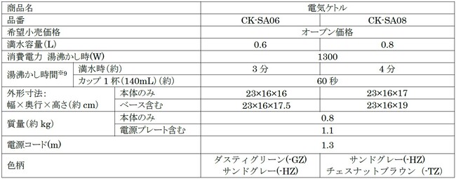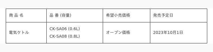 象印マホービン株式会社では、電気ケトルCK-SA型(2サイズ)を2023年10月1日より発売します。