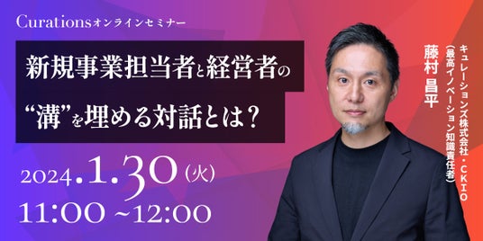 顧客企業のビジネス変革を成功に導くキュレーションズ株式会社(本社:東京都渋谷区、代表取締役社長:根本隆之、以下当社)は、『新規事業担当者と経営者の”溝”を埋める対話とは?』を2024年1月30日(火)に開催いたします。
