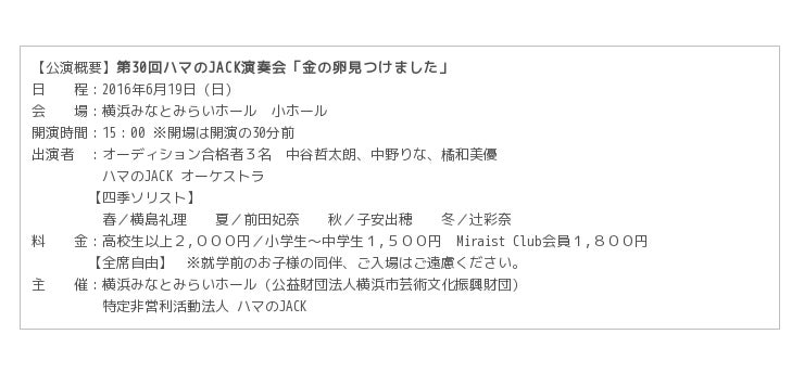 第30回ハマのJACK演奏会「金の卵見つけました」