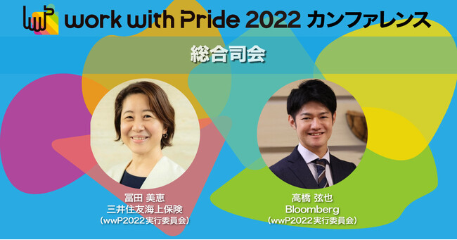 当日は、work with Pride 2022 実行委員会の参画企業であり、LGBTQ+の職場環境の整備に先進的に取り組み、過去のPRIDE指標のゴールド認定実績のある、Bloomberg D&I採用担当 高橋 弦也氏、 三井住友海上 冨田 美恵氏の2名が総合司会を担当します。