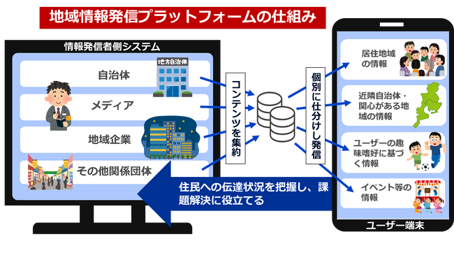 初期は地方自治体や企業の参画拡大を目指しますが、観光や商工業といった各種の地方団体など、その他の発信主体が加わり、より地域密着の情報をユーザーに提供できるよう、体制を整えていきます。