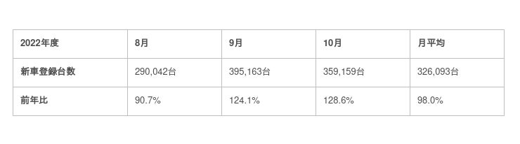 自動車販売市場の動向(2022年10月)
