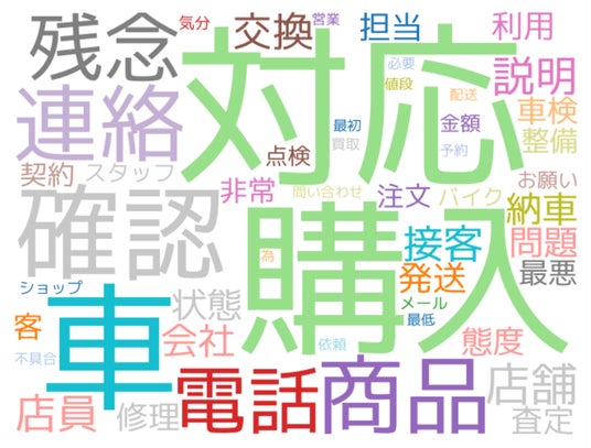 加えて、問い合わせへの対応や、返品・交換・キャンセル時の対応を巡る不満も多く、クレームでの頻出単語を見ても「購入」「商品」「発送」「連絡」「対応」といった言葉が目立ちます。購入から発送までの進捗や対応方針を適切に伝えることが、不要な悪評・クレームの抑制につながるといえます。