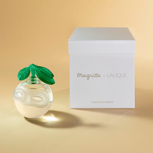 マグリット財団とラリックのコラボレーションは、2023年にルネ・マグリット生誕125周年を記念して始動し、財団の主導のもとルネ・マグリットの謎めいた詩的な世界がクリスタルオブジェとなって登場しました。ラリックは、マグリットの名前から最初に連想され、彼の作品の中でも際立って象徴的なパイプ、リンゴ、山高帽を創作のモチーフに選びました。そして《ラ ヴァルツ エジタシオン》が、この特別なコレクションに加わります。