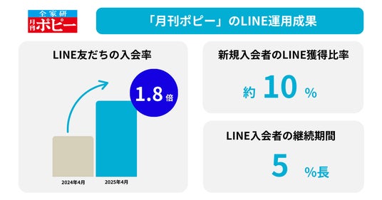 子どもの学齢・興味関心に応じたパーソナライズ配信を実施し、LINEからの入会率は前年同月比1.8倍、入会後の継続期間は5%長い