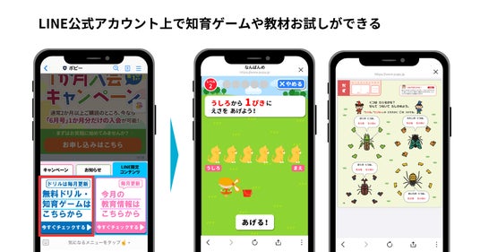 LINE公式アカウントによる情報発信で顧客ロイヤリティを強化。LINEから知育ゲームや教材見本もお試しできる仕掛けに