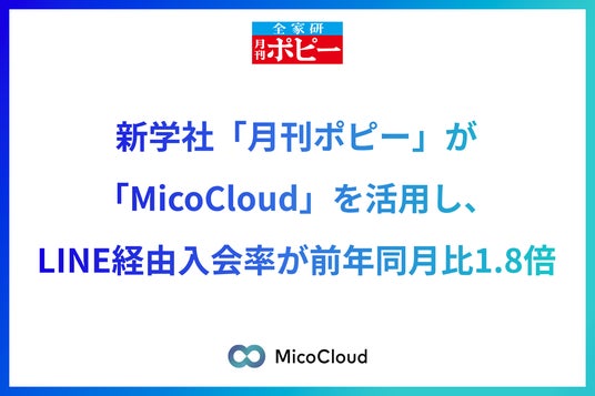 Micoworks株式会社(本社:大阪市北区、代表取締役社長:山田 修)は、家庭学習教材「月刊ポピー」を提供する株式会社新学社(本社:京都府京都市山科区、代表取締役社長:山本 伸夫)がLINEを活用したマーケティングプラットフォーム「MicoCloud(ミコクラウド)」を導入した結果、LINEからの入会率が前年同月比1.8倍に向上したことを発表いたします。(※1)