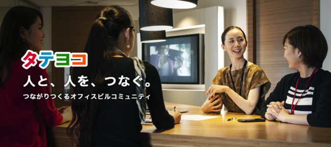 新プロジェクト「タテヨコ」の名称の由来は、様々なひとが入り交じるオフィスビルにおいて、同フロア企業、他フロア企業、同じ職種・役職、同じ趣味を持つ同士など、タテやヨコの繋がりを広げていくことに由来しています。