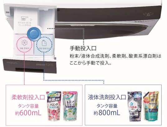 ●容量UPでさらに使いやすく!「液体洗剤・柔軟剤自動投入」