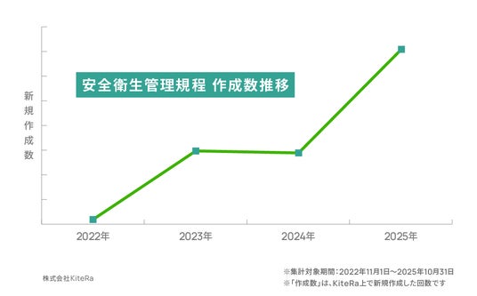 「安心して働ける世界をつくる」をミッションに掲げ、社内規程DXサービス「KiteRa Biz(キテラビズ)」と社労士向けサービス「KiteRa Pro(キテラプロ)」を提供する株式会社KiteRa(代表取締役 執行役員 CEO:植松隆史、本社:東京都港区、読み:キテラ、以下「当社」)は、「KiteRa」に蓄積された規程雛形から作成されたデータ(集計対象:2022年11月1日~2025年10月31日)を独自に分析し、「【社内ルール(規程)トレンド予測2026】来年普及が見込まれる10の規程」を公開します。