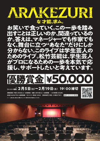 賞金5万円をかけた学生イベント<ARAKEZURI>昼公演が急遽開催決定致しました!!