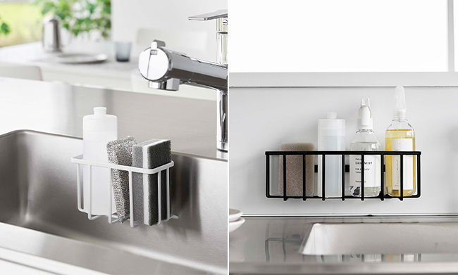 水に強く目立ちにくい貼って剥がせるフィルムフックで浮かせて収納できます。