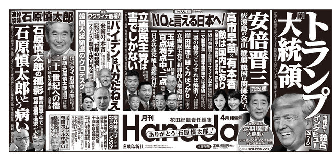 トランプ前大統領が2月25日発売の月刊『Hanada』4月号で、ウクライナ危機をはじめ中国、アフガン、イラン、バイデン政権、メディア問題に至るまで、全てを本音で語る!