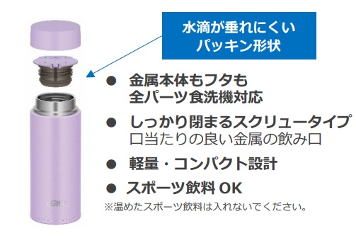 2022年8月に新発売したパッキンとせんが一体化した最新モデル!さらに全てのパーツが食洗機対応なのでお手入れがカンタン。洗いやすさを追求した真空断熱ケータイマグです。