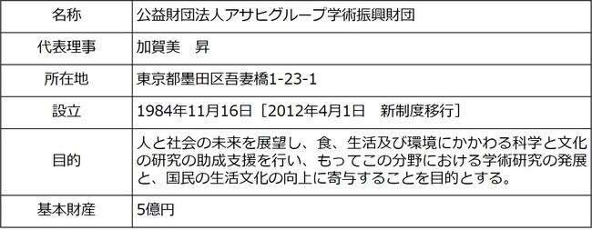 【アサヒグループ学術振興財団 概要】