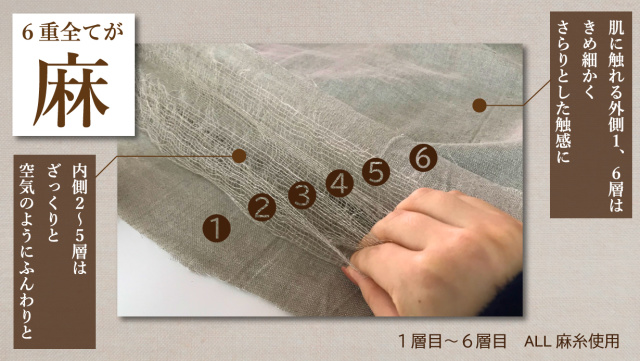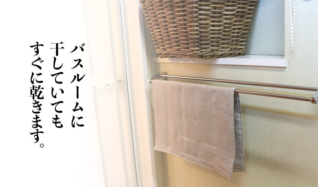 さらに今回のバスマットは麻の6重織ガーゼを2枚合わせにして縫製している為、余分な熱や湿気がこもりにくく、すぐに外へ逃すので、いつもサラッとして気持ちよい使い心地です。