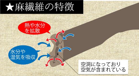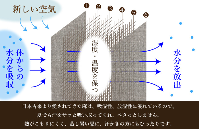 麻は非常に吸水性にすぐれた素材で、水分をサラッと吸収します。