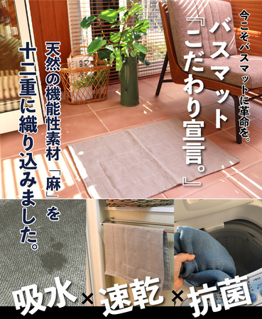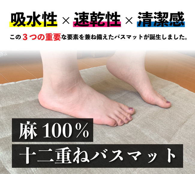 ・タイトル:【速乾×吸水×抗菌】今こそ『バスマットこだわり宣言』麻100%十二重ねバスマット