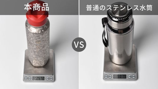 チタンは鉄の3分の2、銅の2分の1の重さなので持ち運びには適した素材です。同容量のステンレス水筒は通常500g超えますが、純チタンボトルSWISS MILITARYはわずか257g。