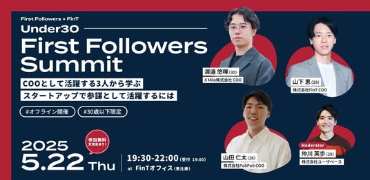 ノンデスク産業向けSaaS・HRサービスを展開するX Mile株式会社(読み:クロスマイル、本社:東京都新宿区、代表取締役:野呂 寛之、以下『当社』)は、2025年5月22日(木)に開催されるオフラインイベント「Under30 First Followers Summit」(主催:First Followers、株式会社FinT)に、当社COO・渡邉が登壇することをお知らせいたします。
