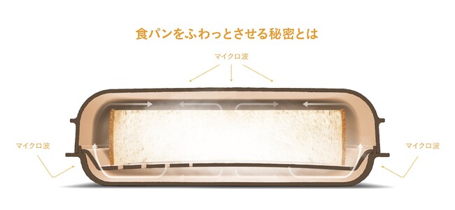 食パンを中心に蒸気が循環する仕組みになっているので、出来立てのような、「ふわっと、もちもち」した食感を何度も再現可能。調理後は蓋を外してそのまま器としてもお使い頂けます。