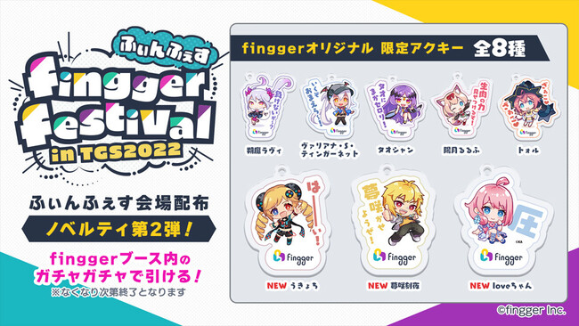 finggerの出展に係る総称を「fingger festival in TGS2022(ふぃんふぇす)」と称し、ブースステージでの配信情報や会場で配布される限定ノベルティ、現地に設営される体験ブースなどの詳細についてもお届けします。