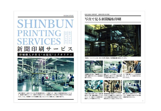 といった特徴をデザインに生かしたいというご要望があり、この度、高速オフセットにて新聞印刷をご希望の企業様向けに「更紙サンプル」及び「新聞印刷サービスガイド」の無料郵送サービスを開始いたしました。