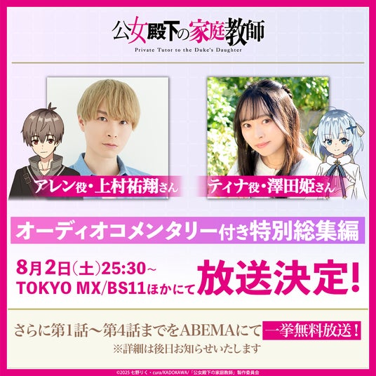 また、2025年8月2日(土)25:30より、アレン役 上村祐翔さんとティナ役 澤田姫さんによるオーディオコメンタリー付き特別総集編(第1話~第4話まで)のTV放送および配信が決定しました。