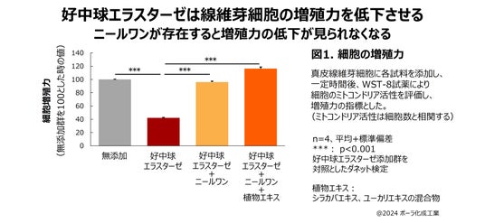 好中球エラスターゼは真皮線維芽細胞そのものにも悪影響を与えることが判明、ニールワン(R)はその作用を抑制