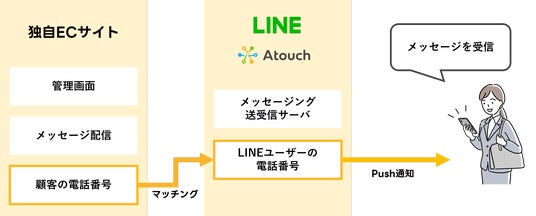 その経験を活かし、2022年10月にLINE公式アカウントAPIツール「Atouch(アタッチ)」をリリース。これにより、企業はLINE上で商品陳列や決済が可能となり、顧客はIDやパスワードなしで購入を完了できます。