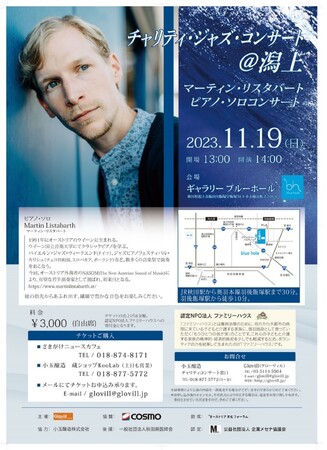 コスモエネルギーホールディングス株式会社(代表取締役社長:山田 茂、以下「当社」)は、グループ理念である「企業と社会の調和と共生」のもと様々な社会貢献活動に取り組んでおりますが、その一環として、2023年11月19日(日)にギャラリーブルーホール(秋田県潟上市)において当社協賛によるチャリティ・ジャズ・コンサート(以下「本コンサート」)が開催されましたので、お知らせいたします。