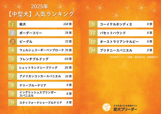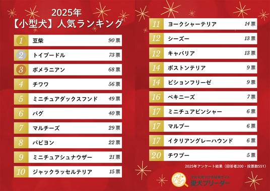 株式会社ピクシー(本社:東京都渋谷区、代表取締役:小倉 鉄平)が運営する、子犬と未来のオーナーさまが出会えるブリーダーサイト『愛犬ブリーダー(https://aikenonline.jp)』は、好きな犬種に関する独自アンケート調査を実施しました。その結果をもとに、2025年のサイズ別人気犬種ランキングを発表します。