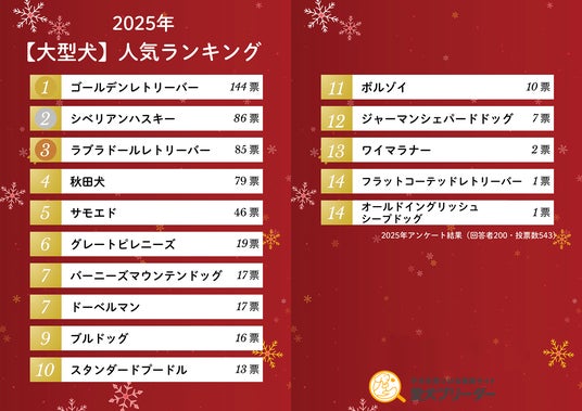 大型犬の中でも、性格の穏やかさや人懐っこさ、見た目の魅力が支持の理由となっていることがうかがえます。