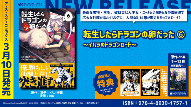 アース・スターノベルで刊行中のノベルが原作で、現在コミック アース・スターで掲載中の人気作品『転生したらドラゴンの卵だった ~イバラのドラゴンロード~』第6巻を3月10日(金)に発売いたします。