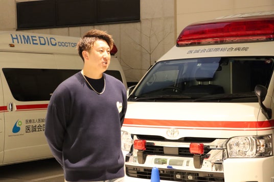 杉本選手から救急救命士、看護師、医療従事者への激励として「お体に気をつけながら、お仕事を頑張ってください。また良ければお休みの日の気分転換に野球観戦にも来てください。」とお言葉をいただきました。