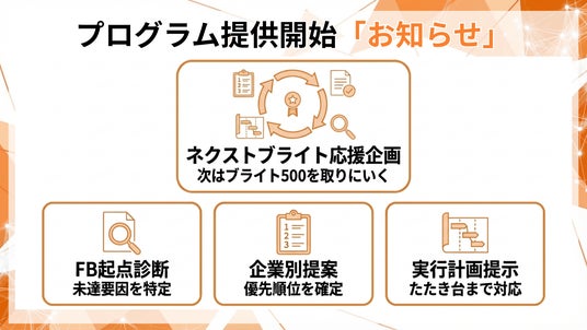 本プログラムは、ネクストブライト企業が次年度にブライト500を狙うための「ギャップ診断と提案」に特化した支援です。