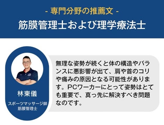 これは、モニターの位置や高さや角度が適切でないため、余計に首や体に負担をかけている可能性があります。モニターを適切な位置で使用することで、正しい姿勢で作業が可能になり体への負担も減少します。