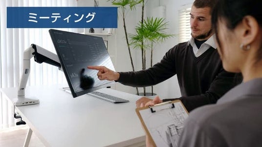 同僚やお客様とのミーティングでも、サッとディスプレイを回せば、視線を共有しながらスムーズに進行。モニターを簡単に調整できるので、コミュニケーションが一段とスマートに。