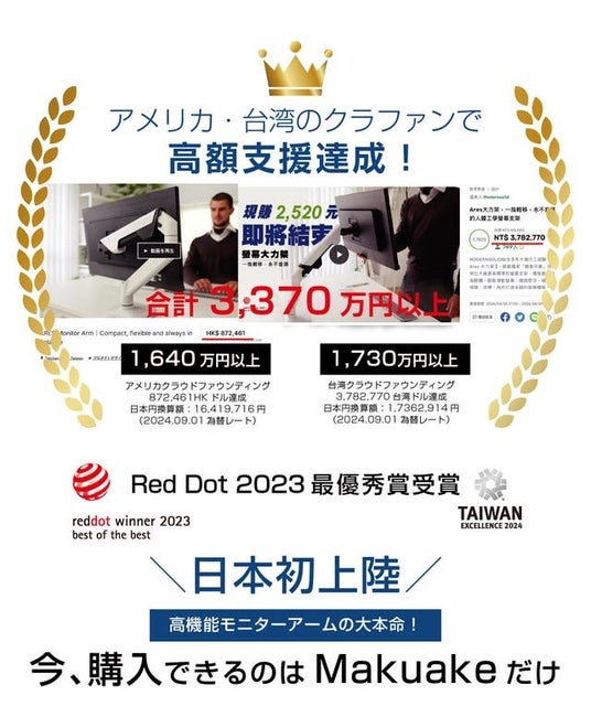 1. モニタアームの大本命がついに日本上陸!ドイツRedDotデザイン2023最優秀賞受賞!