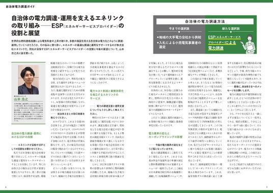さらに、エネルギーサービスプロバイダーとして自治体の電力調達・運用を支援する株式会社エネリンクの山本浩之氏へのインタビューも掲載。ESPの役割と今後の展望について語っていただきました。