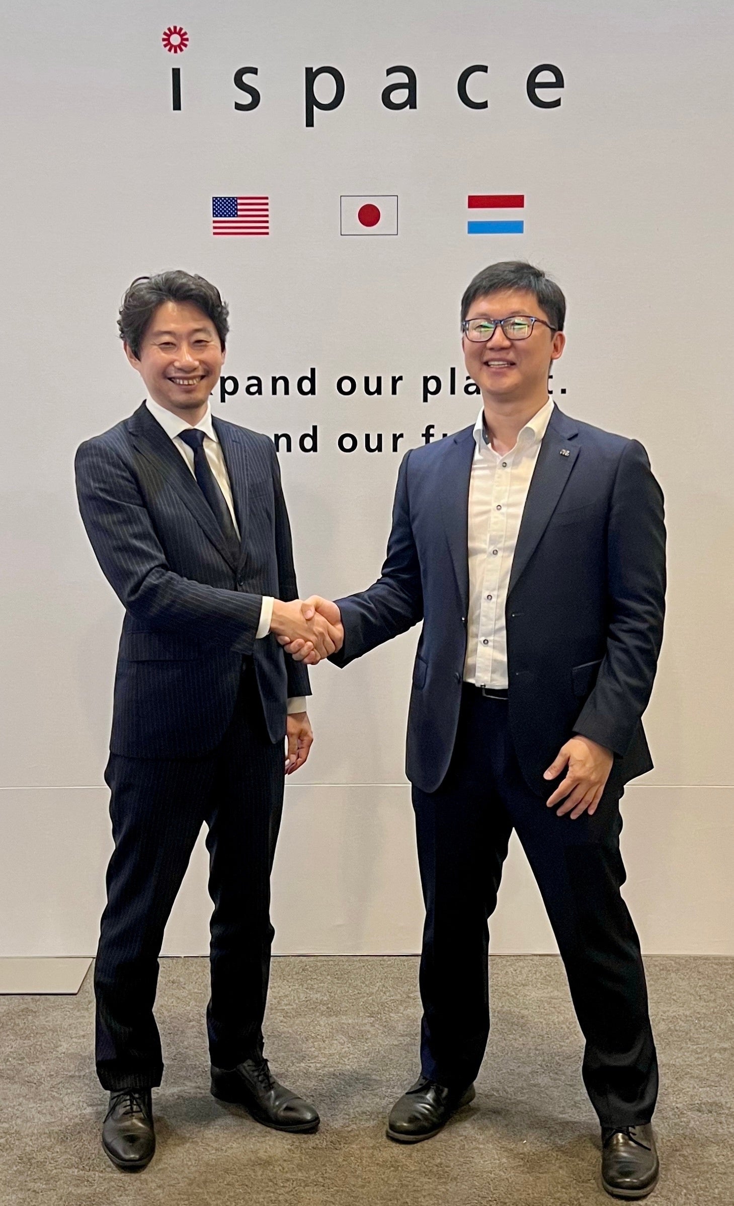 第76回 国際宇宙会議(IAC2025)にて、株式会社ispace 代表取締役CEO & Founder 袴田武史(左)とUEL Vice President Jaeho Lee氏(右)