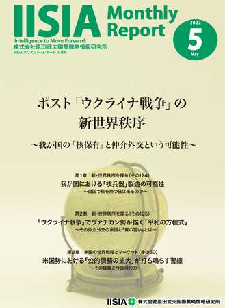 弊研究所は今後も、「IISIAマンスリー・レポート」等の調査分析レポートを通した“情報リテラシー”の普及により、企業ヴィジョンである「Pax Japonica」の実現に向けたサーヴィスを展開して参ります。