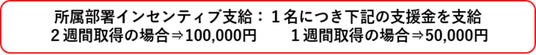 一定期間の取得を条件に、育児休業取得者の所属部署に対するインセンティブを支給する制度。