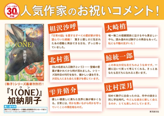 『ななつのこ』から始まる、加納朋子〈駒子〉シリーズ。なんと20年ぶりのシリーズ最新作『1(ONE)』が、2024年1月11日に発売されます!購入特典として、書き下ろし掌編QRコード掲載&初回限定ポストカード封入!