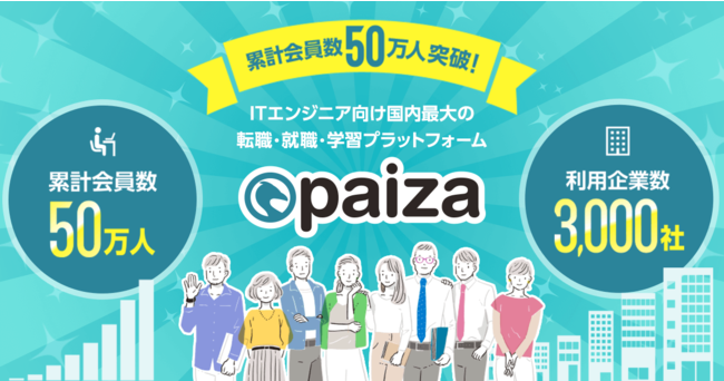 ITエンジニア向け国内最大の転職・就職・学習プラットフォーム「paiza(パイザ)」を運営するpaiza株式会社(本社:東京都港区、代表取締役社長 片山良平)は、2022年3月に登録者が50万人を突破いたしました。直近1年間で約10万人の登録者増となり、利用企業数は3,000社を超えました。これを記念して、会員の属性や転職の動向などをテーマにしたインフォグラフィック特設サイトを公開しましたのでお知らせいたします。